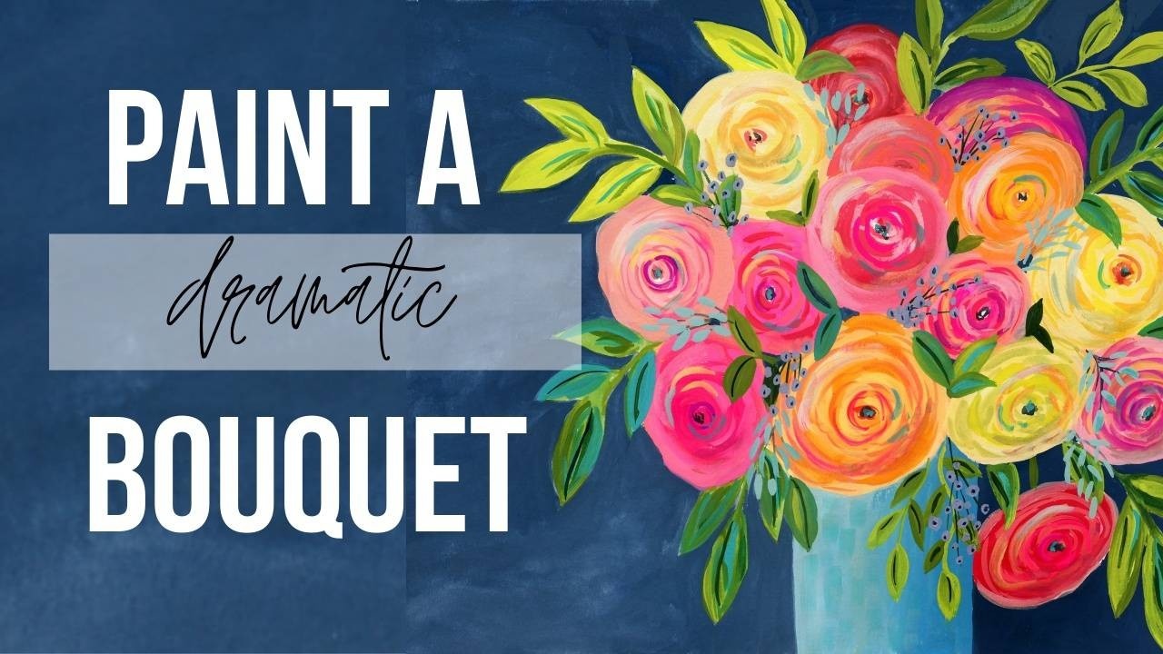 Step by step techniques to creating a colorful bouquet with a darker, dramatic background!